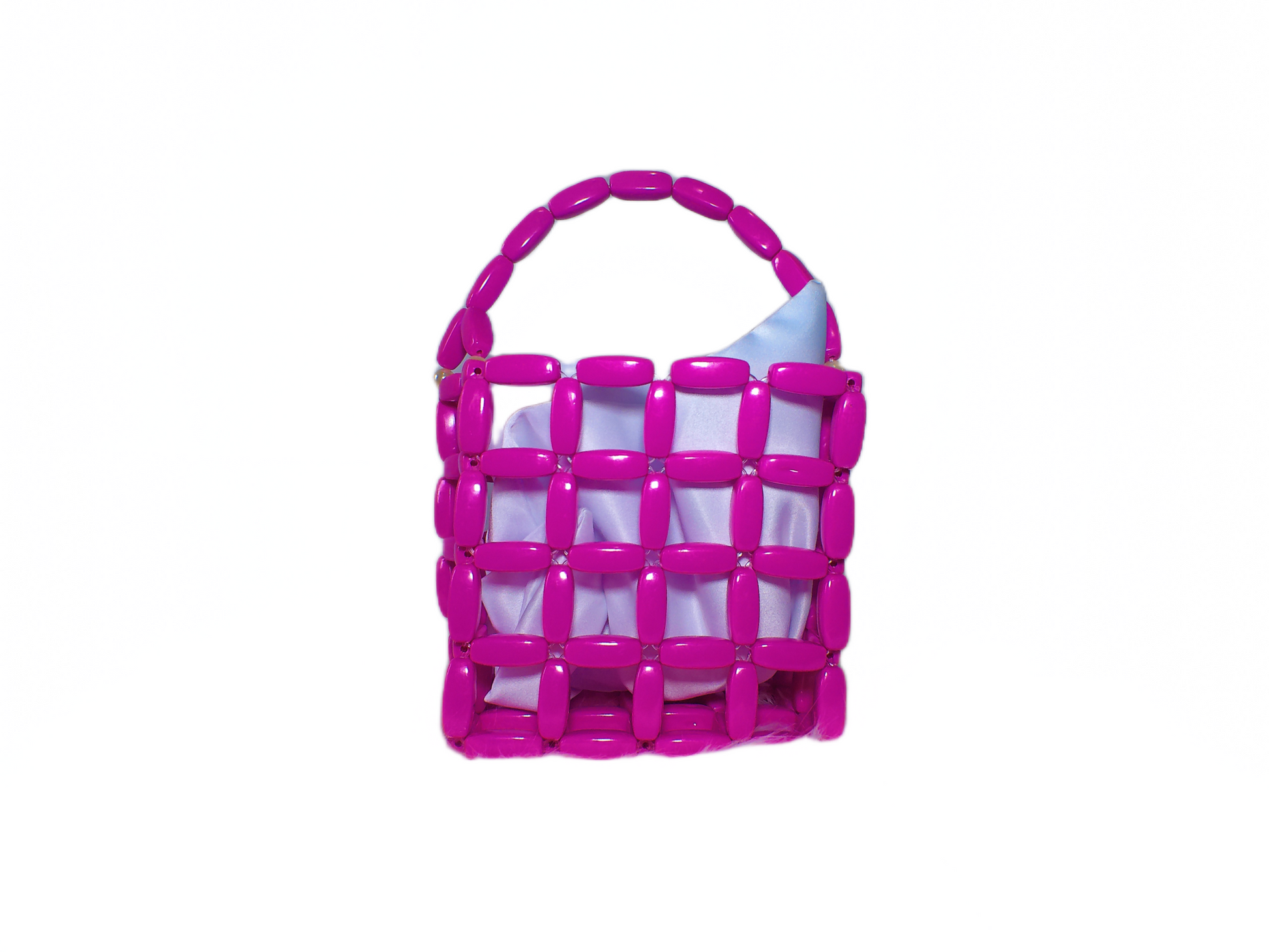 Brighten your summer with the Pink Lattice Tote, a handcrafted handbag blending bold style and practicality. Featuring a unique pink bead lattice design and a sturdy handle, this tote is perfect for beach days, casual outings, or as a standout accessory.